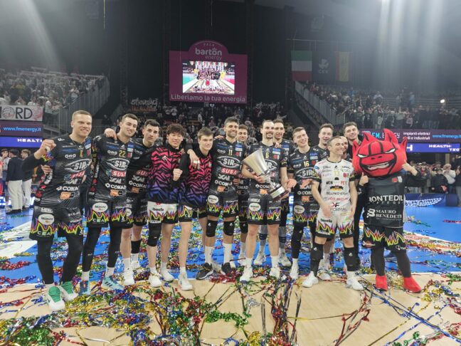 In campo, schierati da coach Lorenzetti, Giannelli, Ben Tara, Semeniuk, Plotnytskyi, Crosato, Russo e Colaci. Lo starting six di coach Eccheli: Frascio, Atanasov, Rohrs, Beretta, Mosca, Zimmermann e Scanferla. Mvp Kamil Semeniuk.
